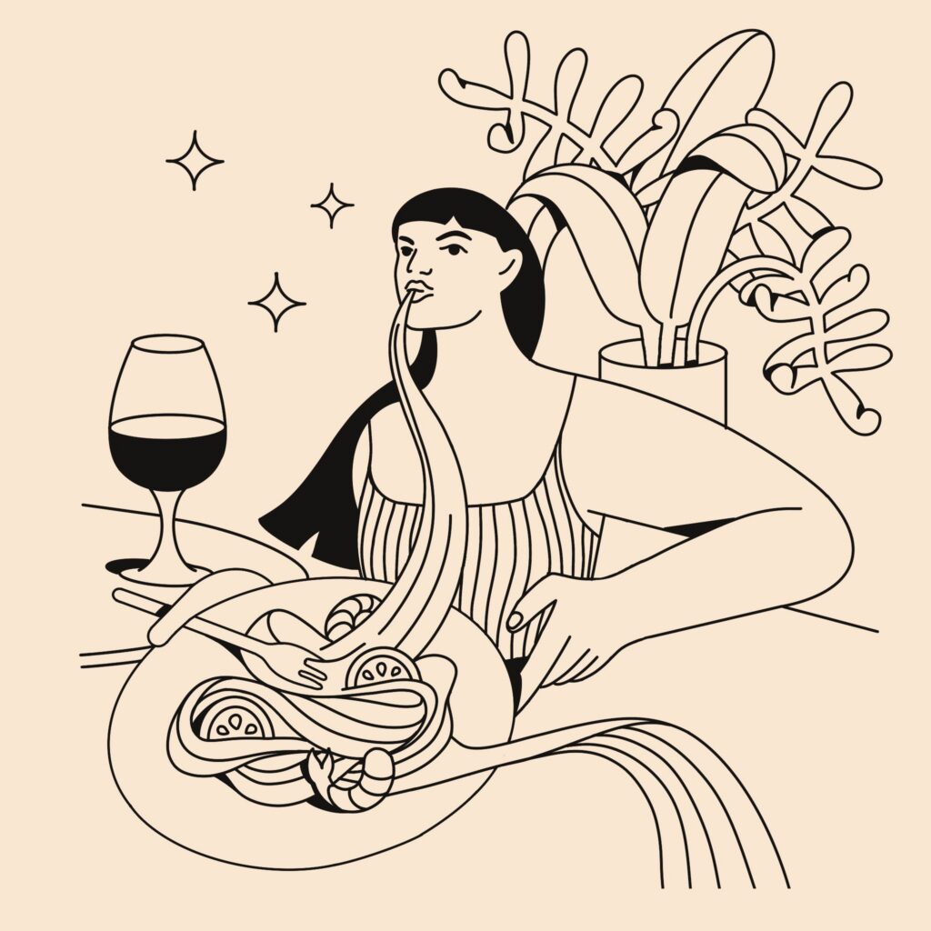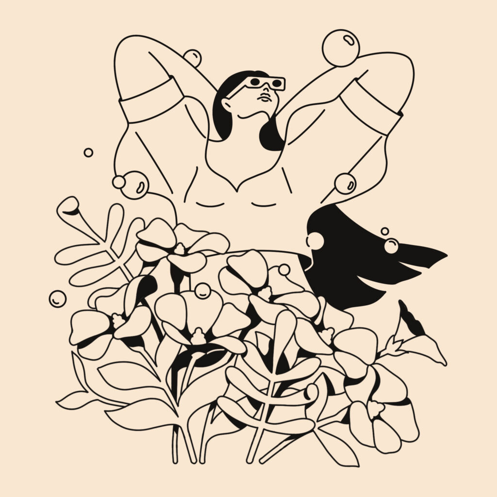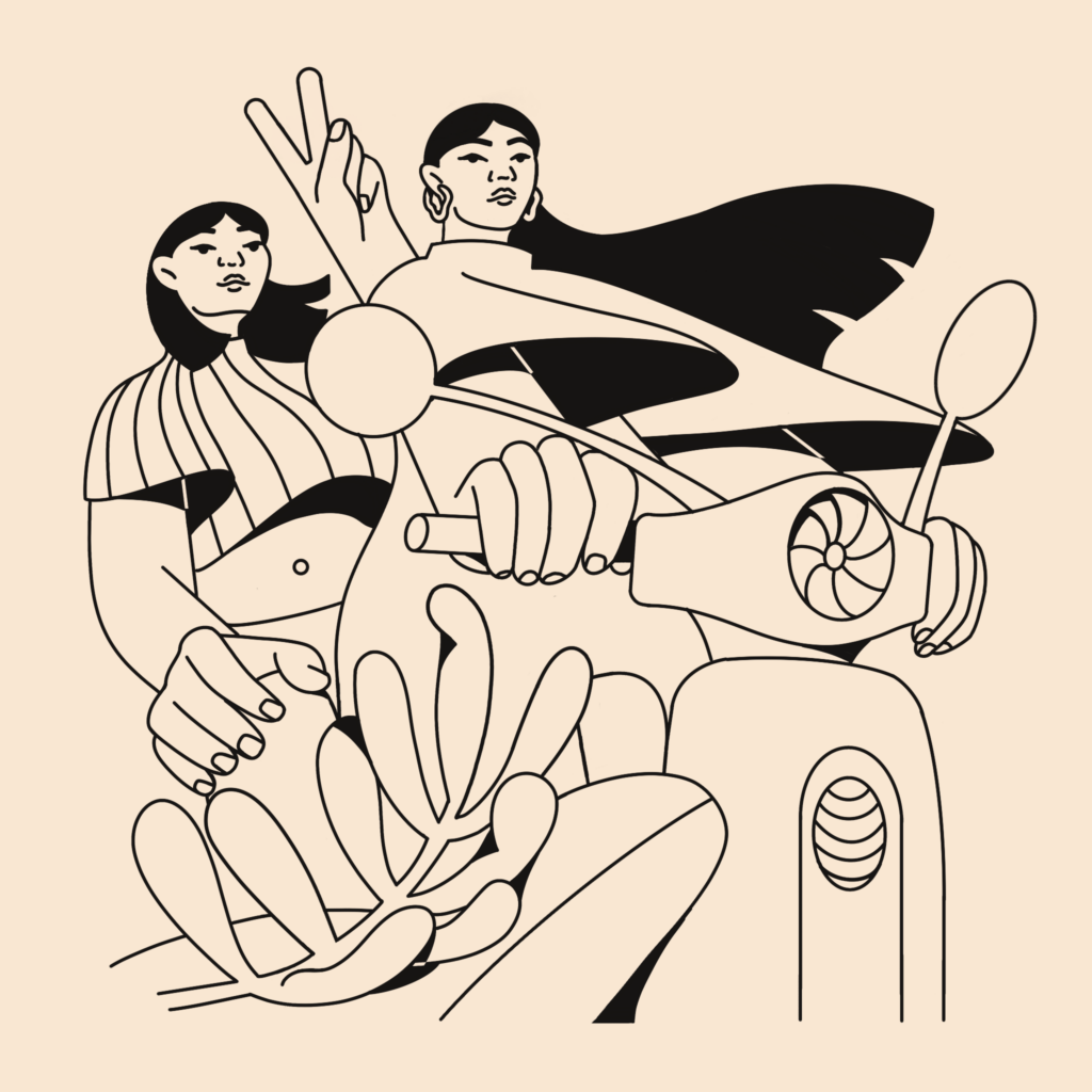 Summer Diaries is a series of five black-and-white illustrations acting as a visual journal of the season’s best memories. By using a monochrome palette, I focused on the pure atmosphere of each scene: a woman tucked among flowers, the quiet of a deep dive, and the simple pleasure of summer noodles. From a peaceful couple on the beach to the wind-swept freedom of a scooter ride with friends, these pieces celebrate the timeless feeling of warmth and connection. This collection is about stripping away the noise to find beauty in the fleeting, everyday moments that make summer feel eternal.