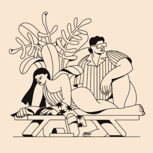 Summer Diaries is a series of five black-and-white illustrations acting as a visual journal of the season’s best memories. By using a monochrome palette, I focused on the pure atmosphere of each scene: a woman tucked among flowers, the quiet of a deep dive, and the simple pleasure of summer noodles. From a peaceful couple on the beach to the wind-swept freedom of a scooter ride with friends, these pieces celebrate the timeless feeling of warmth and connection. This collection is about stripping away the noise to find beauty in the fleeting, everyday moments that make summer feel eternal.